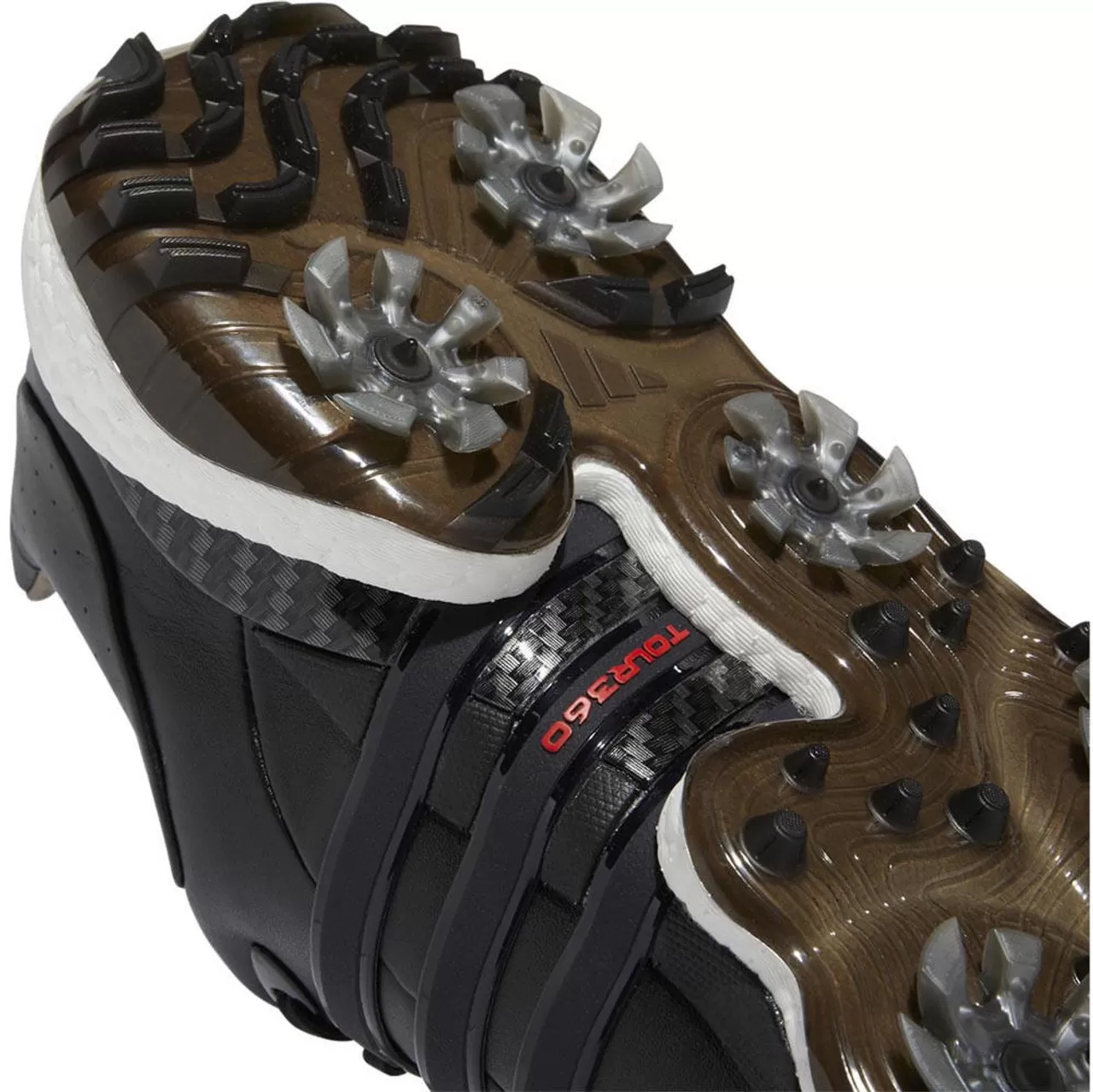 Take your performance to the next level in these adidas golf shoes. They’re made with a BOOST midsole for energy return and enhanced comfort. The 360Wrap design locks in and supports your feet through 18 holes and beyond. An INSITE® sockliner offers cushioning for optimal fit and balance, and the SPIKEMORE traction outsole provides solid grip throughout your entire round.