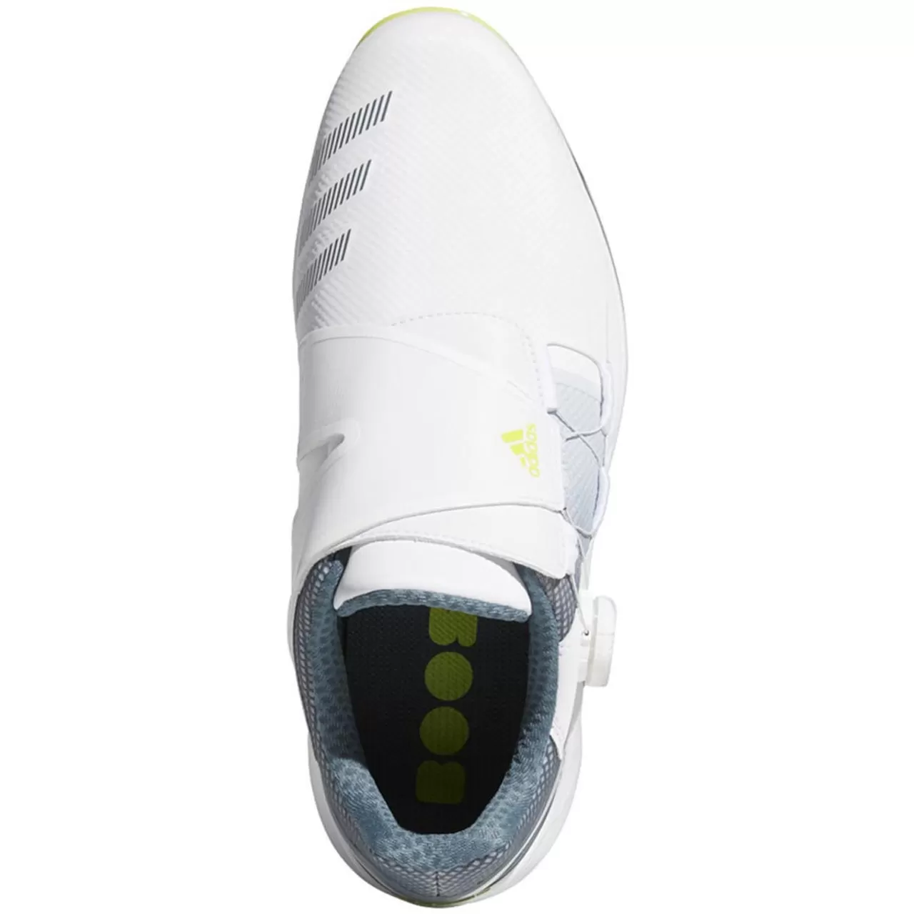 Step up to the tee with confidence. The lightweight, low profile of the Adidas ZG21 BOA Golf Shoes provides a solid foundation for every drive. A hybrid Lightstrike and Boost midsole is super light and charges each step with energy. The waterproof upper keeps feet dry through wet conditions. Line up your next shot with the power and stability to split the fairway.