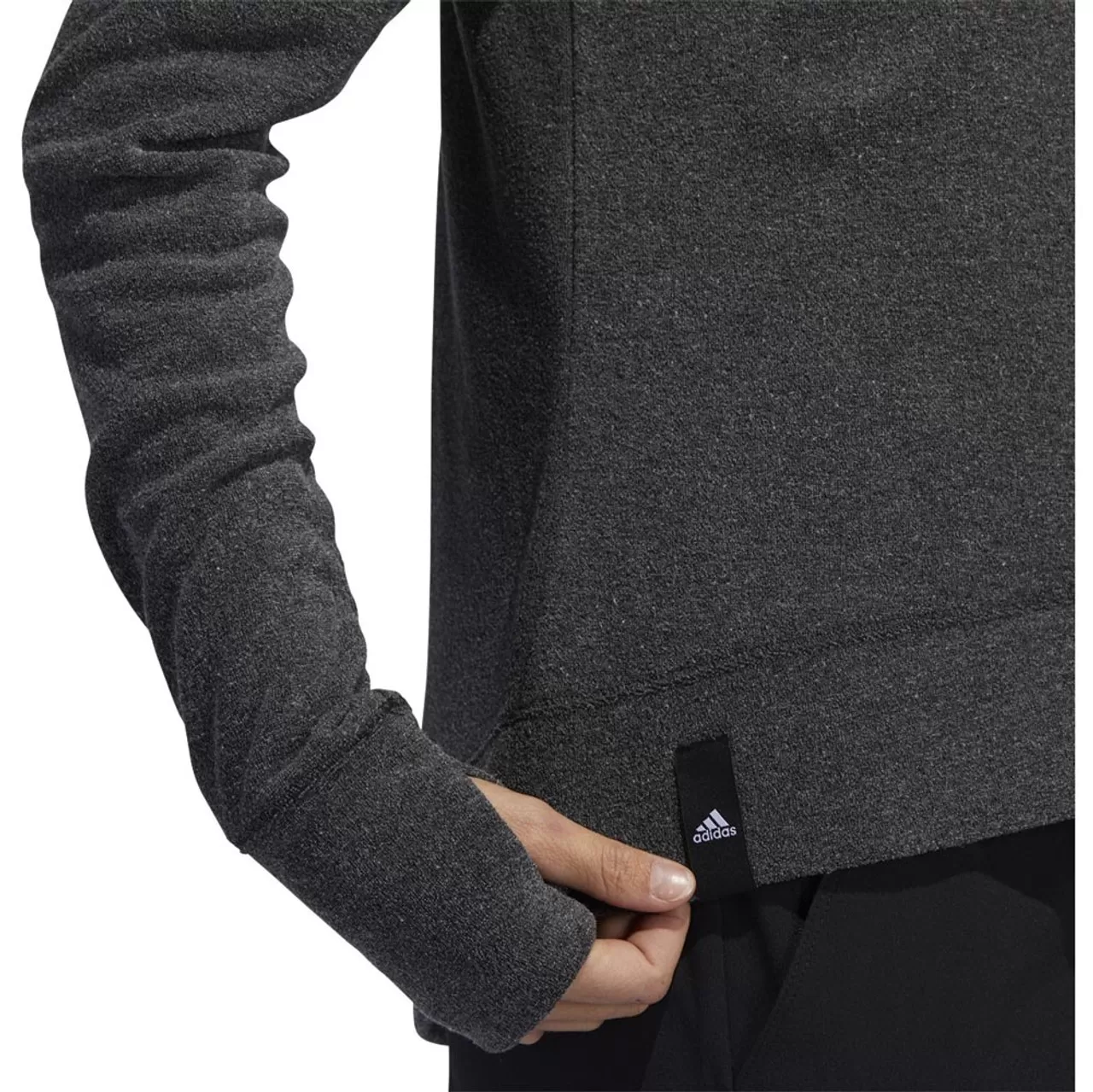Thumbhole Cuffs Slip the sleeves over your cold hands for warmth or to keep this sweatshirt fitting snug throughout your golf swing.