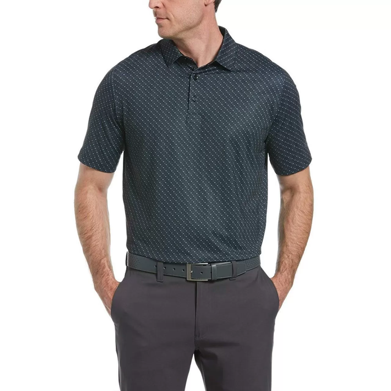The Callaway Allover Chevron Polo is made for the golf course or the clubhouse. The versatility of the chevron print, comfort stretch Swing Tech, and moisture-wicking technology combined with UV sun protection has you prepared for the full 18 and into your post-round activities.