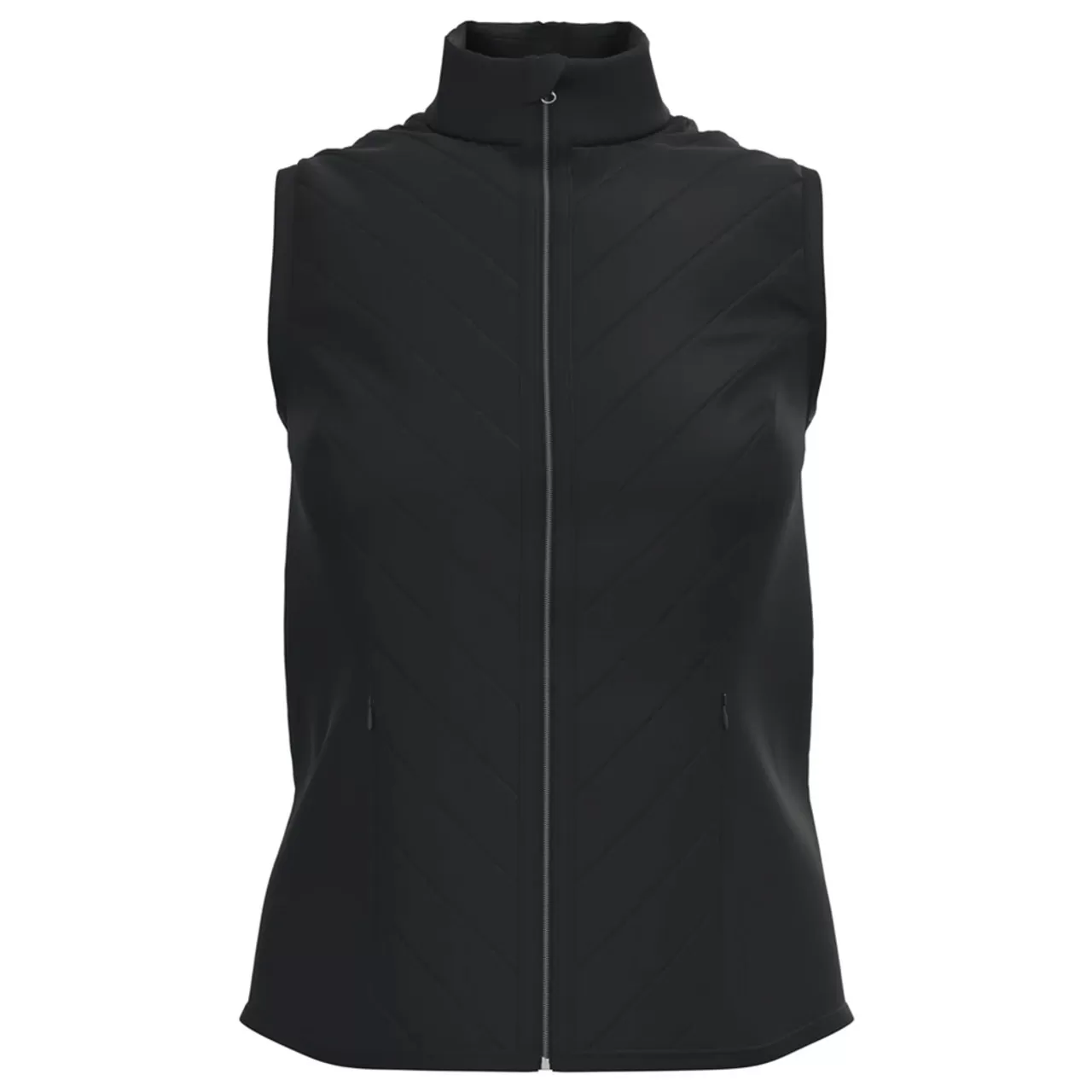 When the weather cools, add a layer of comfort to your game with this Callaway women’s golf vest. Thermal fabric and a mock neck collar help protect you from the elements while added stretch and built-in SwingTech™ technology allow for a comfortable full range of motion. Designed for style and performance, dobby fabrication creates a subtle, sophisticated texture that enhances the chevron quilting on the front panel, while the fleece back panel provides flexibility and warmth.