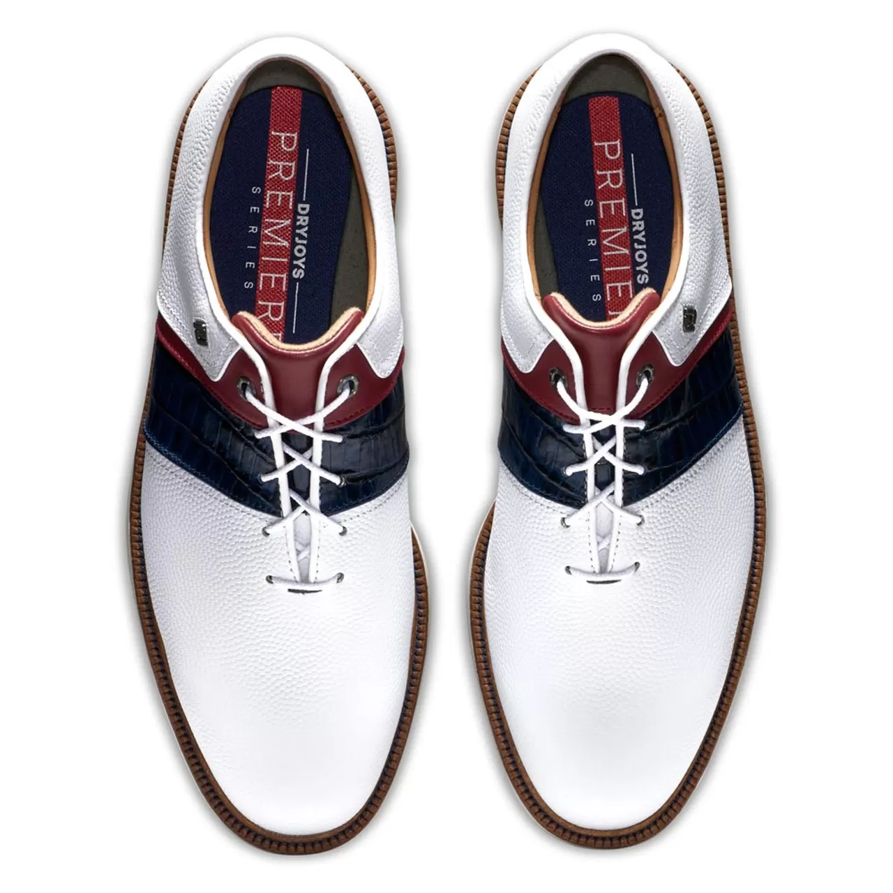 The FootJoy Premiere Series Packard golf shoes were designed in collaboration with PGA Tour players for the 2021 season. Traditional styling meets all day comfort. The FootJoy Premiere Packard golf shoes offer complete and consistent traction during every swing, on every surface. The lightweight premium construction is made from full grain leather for the perfect fit, finish and style. High energy returning midsole foam extends comfort for the entire time you’re out on the links. Engineered with comfort and performance in mind, the Premiere Series shoes, worn by more Tour players in 2021 than any other golf shoes, are made to support your game on the course.