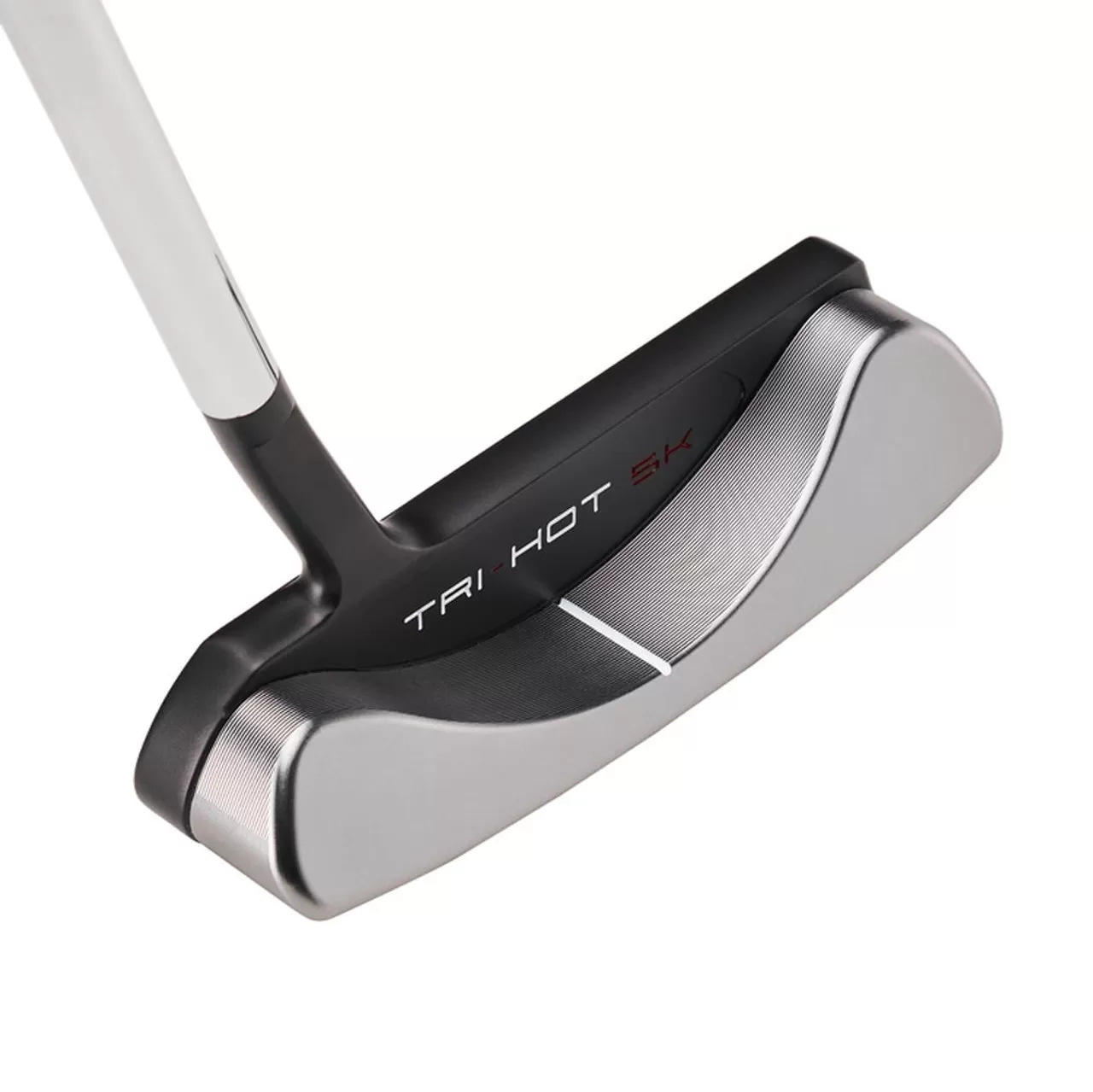 Odyssey developed Tri-Hot 5K with an audacious goal, to introduce a new blade putter construction that outperforms a mallet, in a classic shape that the best players on TOUR love. They’ve moved the CG positioning forward and leveraged stainless steel, tungsten, and 6061 aircraft grade aluminum, meticulously crafted to re-invent what a blade can accomplish. Using massive amounts of tungsten, Odyssey developed an inertia level exceeding 5000 IZZ for incredible forgiveness that’s unmatched in the blade category, all while moving the CG closer to the face. This combination promotes improved performance in speed control, spin control, speed consistency on off center hits, and a much tighter downrange dispersion that limits off-target spin.