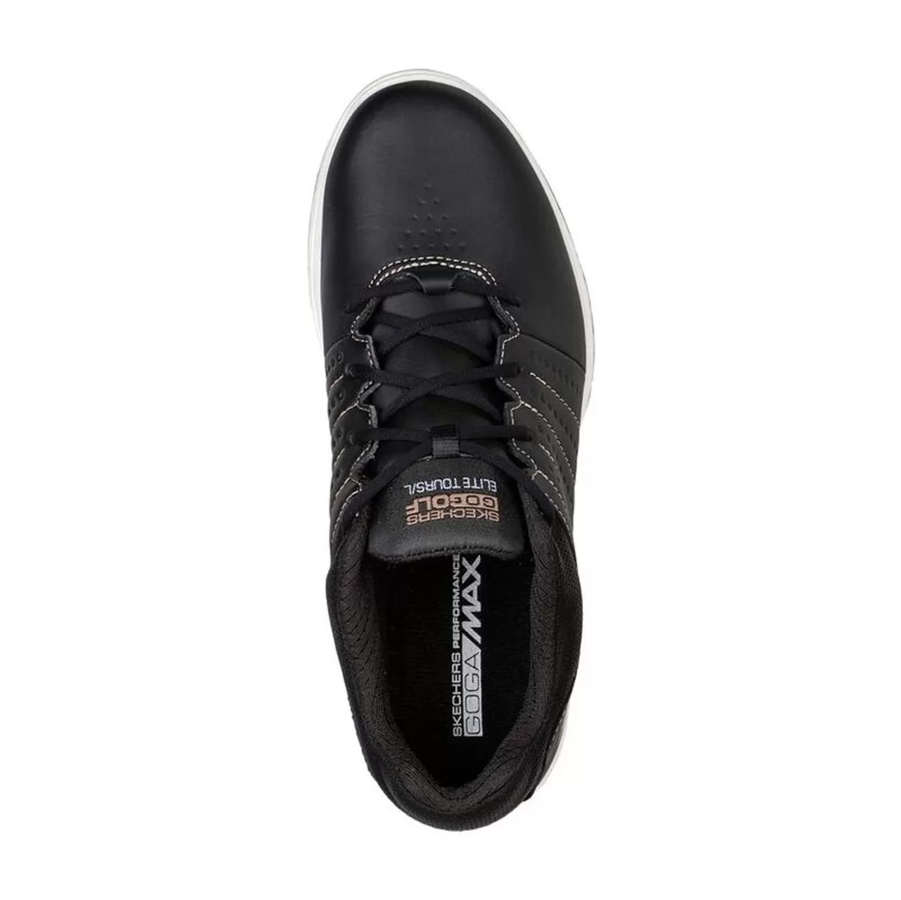 Elevate your style in total comfort with Skechers GO GOLF Elite Tour SLâ„¢. This lace-up golf design features a waterproof leather upper with a Skechers Goga Max comfort insole and lightweight ULTRA GO® cushioning. The premium leather upper attributes to a two-year waterproof Skechers warranty. Â