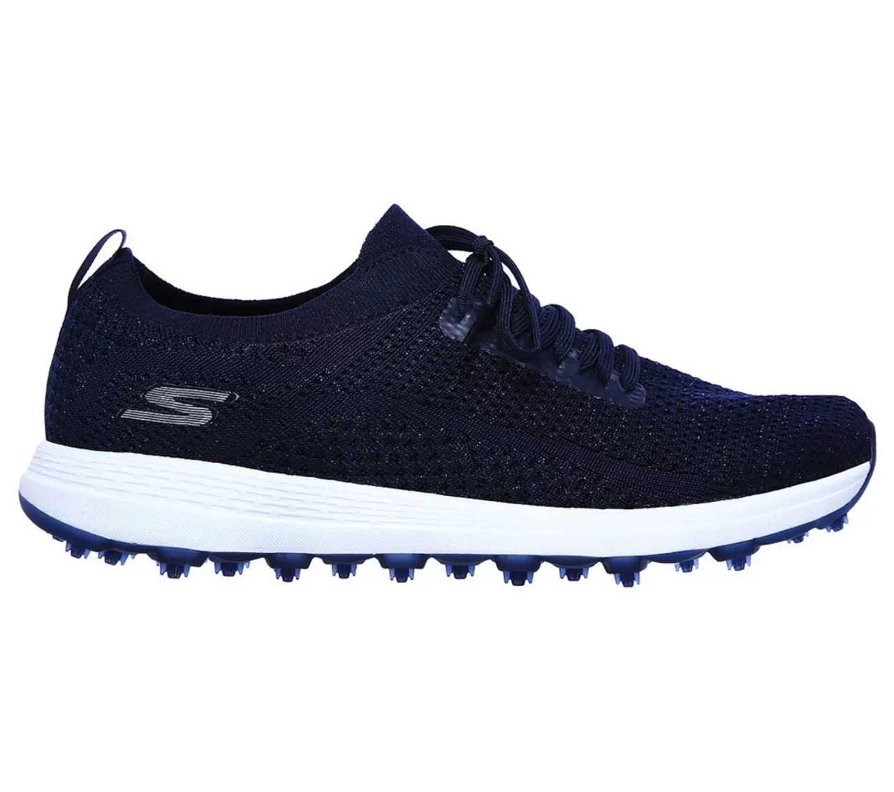 High fashion meets high comfort with the Skechers Go Golf Max Glitter. The breathable mesh upper features a speckled metallic shine that will make you stand out in your foursome. Lightweight and soft cushioning is delivered by the ULTRA FLIGHT and GOGA MAX insole. The spikeless TPU outsole provides durable stability and grip as you walk and swing.